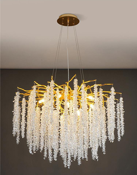Colgante de interior acabado cromo y cristal opalino G9x19 – D:73cm H:180cm