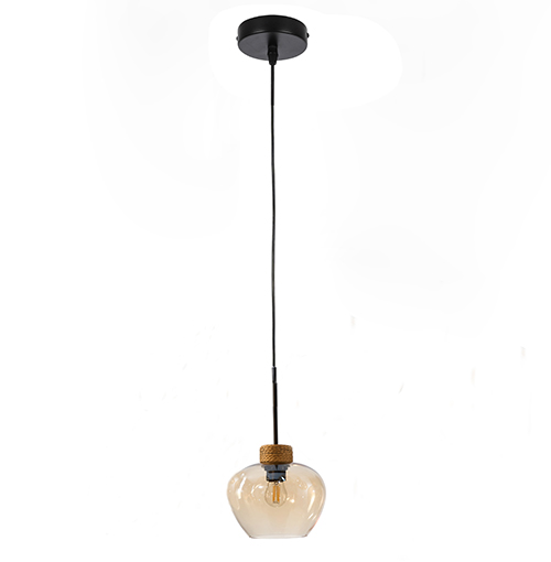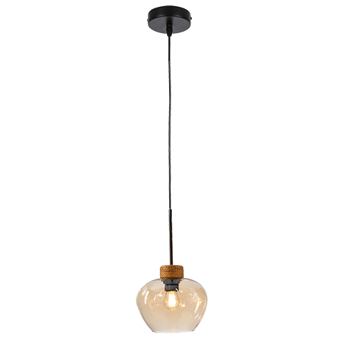 Colgante de interior acabado negro y cristal ámbar E27x1 D:18cm H:120cm