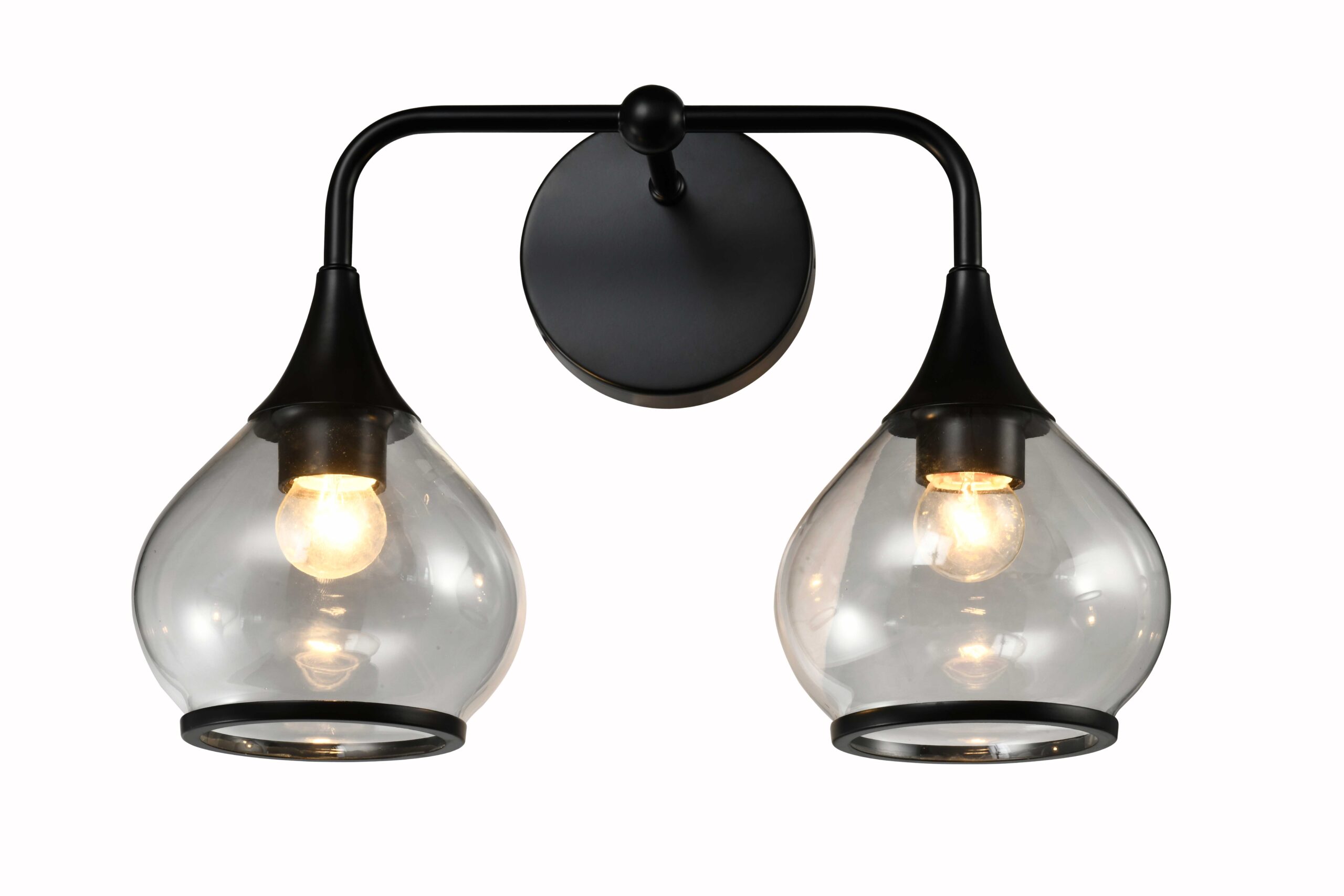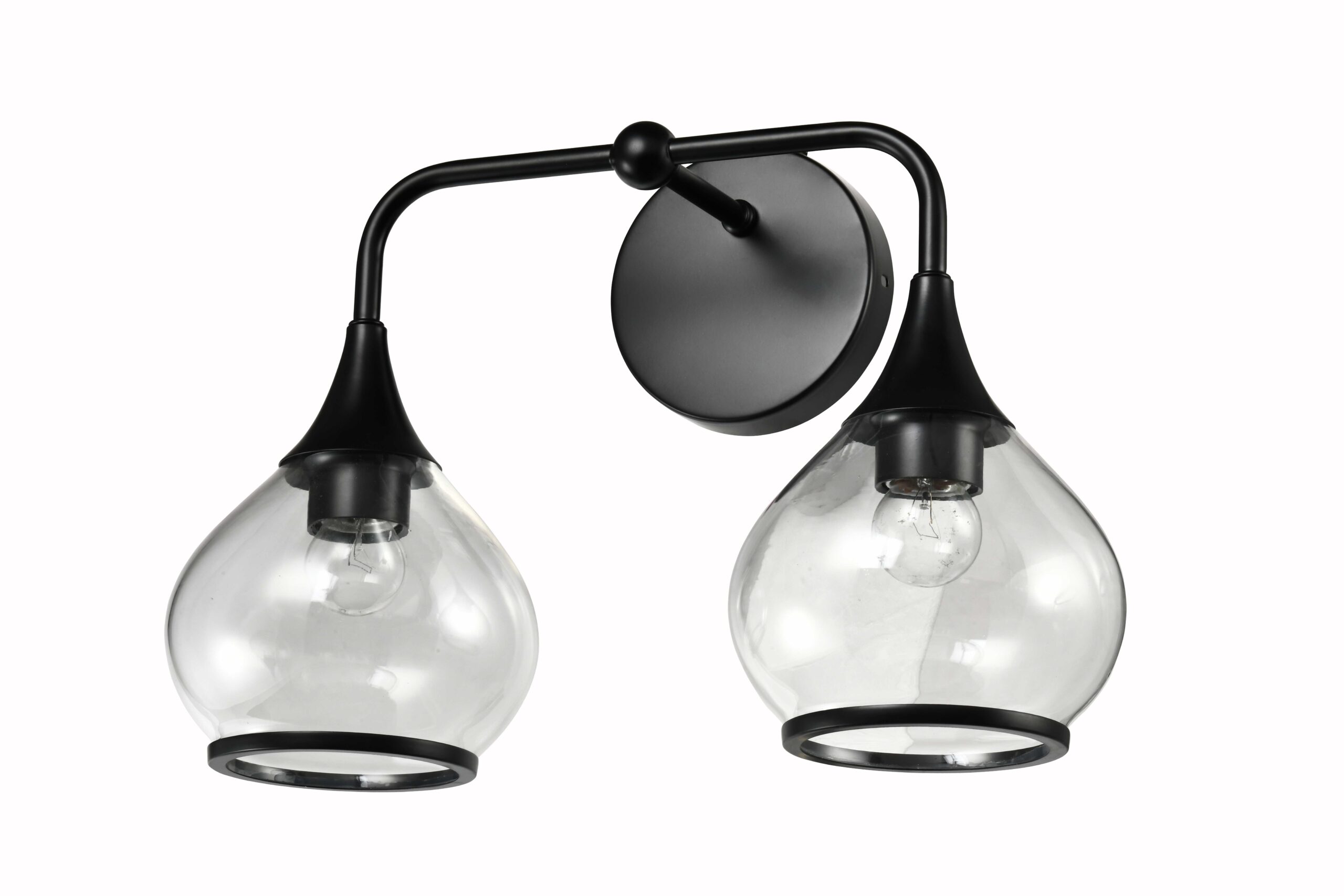 Lámpara de pared estilo industrial vintage con acabado negro y vidrio transparente -E27x2 -W:42cm H:30cm