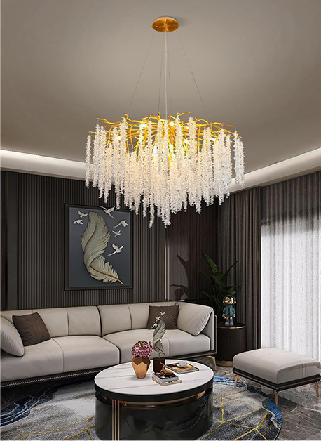 Colgante de interior clásico acabado dorado E12x12 – D:80cm H:120cm