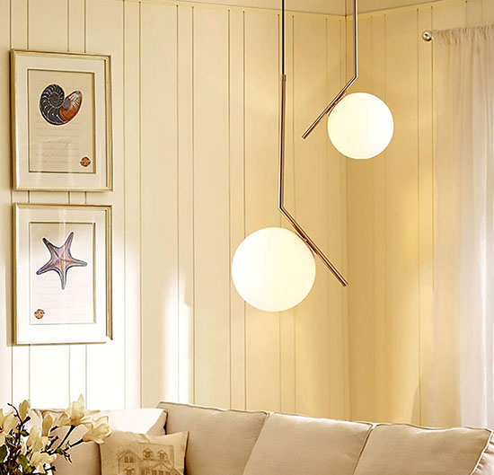 Lucía – Lámpara colgante de interior acabado latón y cristal opalino, 1 luz