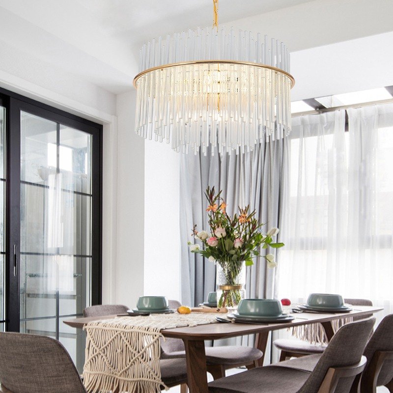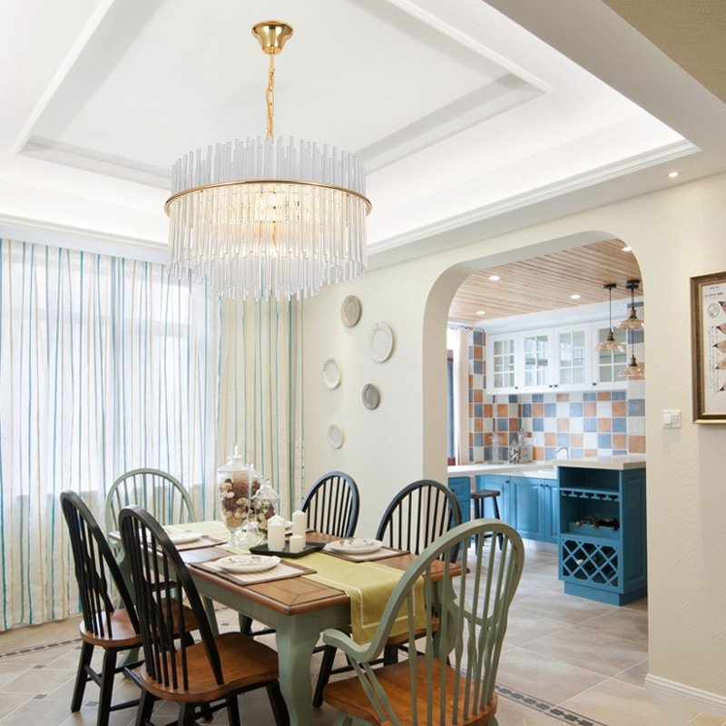 Mánchester – Lámpara colgante de interior doble altura acabado dorado y cristales, 9 luces