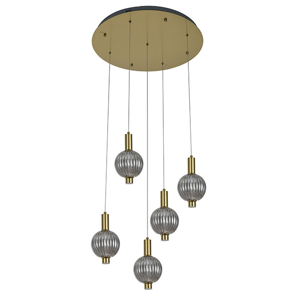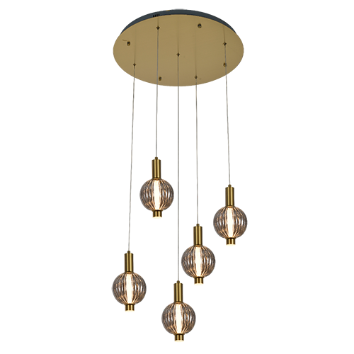 Nino – Lámpara de pared interior acabado dorado y cristales, 5 luces